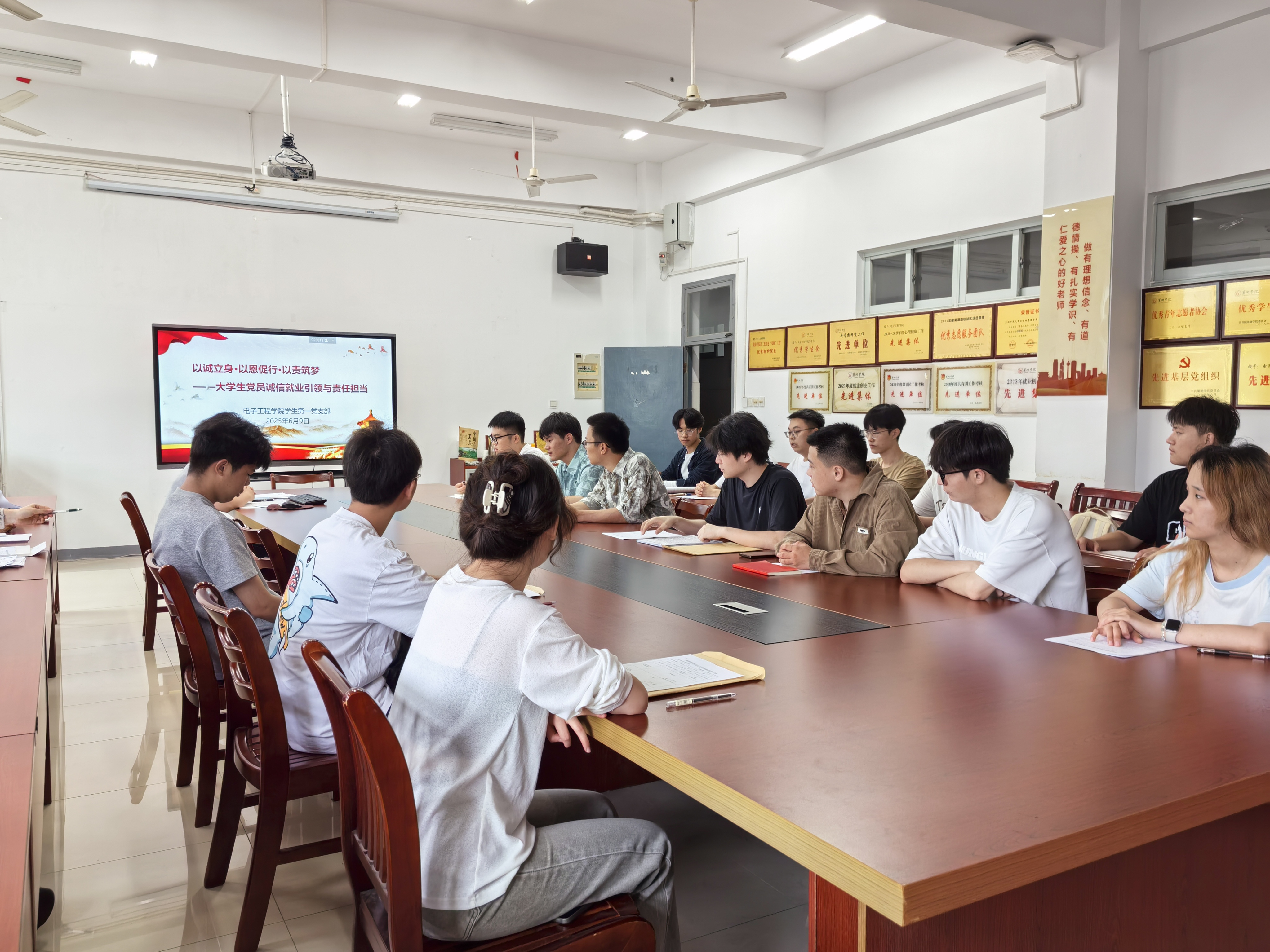 为强化学生党员的诚信意识与责任担当,提升就业竞争力,6月9日,电子工程学院学生第一党支部举办了“以诚立身·以恩促行·以责筑梦”主题党日活动。活动聚焦诚信就业与感恩责任,通过事迹分享、技能培训、案例剖析、互动研讨等形式,引导党员筑牢诚信根基,勇担时代使命。