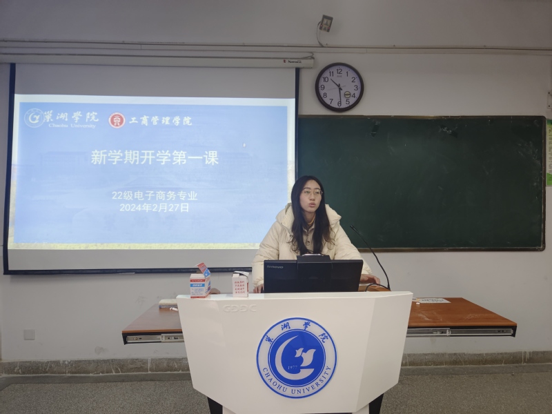 为迎接新学期的到来,落细落实开学各项工作,22级电子商务专业于2月27日上午在博学楼511教室开展“开学第一课”主题班会。本次会议由辅导员储岚霖主持,22级电子商务专业全体成员参加。