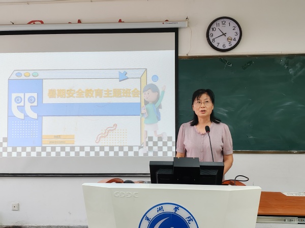 为进一步落实领导干部联系班级工作,充分发挥党政领导干部管理育人、服务育人的作用,助力学生成长成才。6月28日上午,校工会副主席郭凤英出席指导工商管理学院21级电子商务班开展诚信考试暨暑期安全教育主题班会。本次班会由辅导员葛晓龙主持,21级电子商务专业全体同学参加。