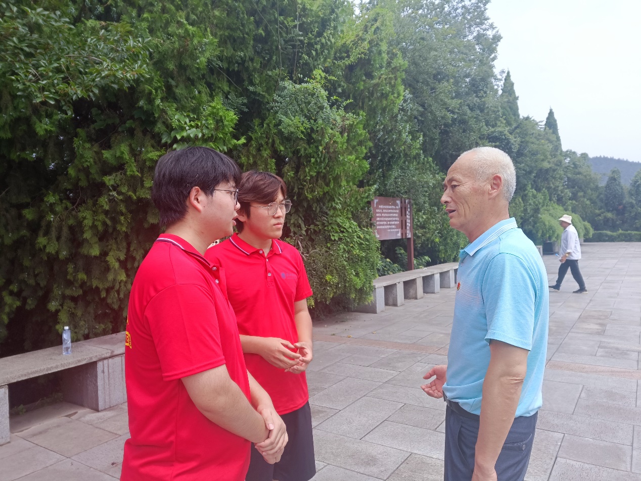 图为实践团成员向马鞍山当地退休干部了解濮塘村红色文化教育基地现状