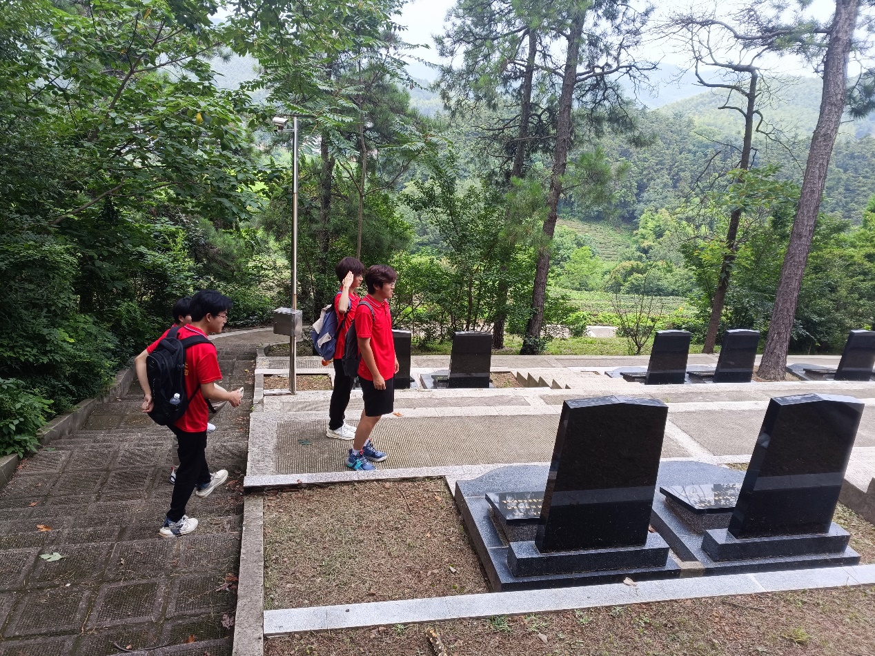烈士陵园中实践团队成员们攀爬100多层的楼梯,直至达到顶部的刘一鸿纪念亭。站在亭子上,他们俯视着烈士们的墓碑和周围的天地,心中油然而生无法言喻的情感。亭子附近还有许多渡江战役无名墓碑,以及为扑灭8.2火灾而牺牲的三名消防员的纪念碑。