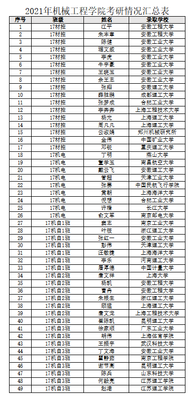 2021年机械工程学院考研情况汇总表