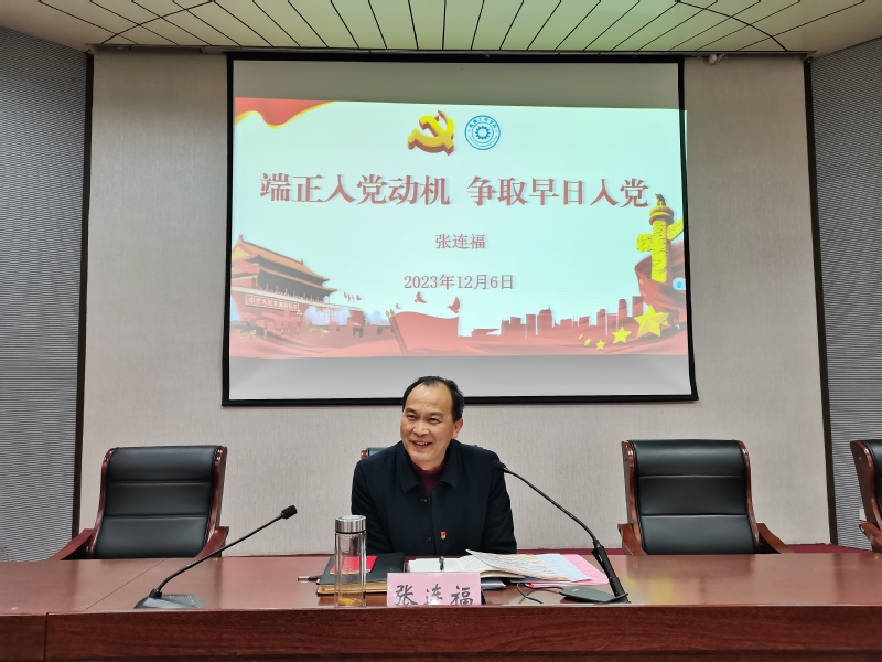 12月6日,学校党委委员、宣传(统战)部部长、学院党委书记张连福出席开班仪式并为全体学员作党课第一讲。他希望全体学员珍惜这次培训机会,不断加强党性修养,树立正确的世界观、人生观和价值观,扣好人生的第一粒扣子,严于律己,争做表率,争取早日入党。