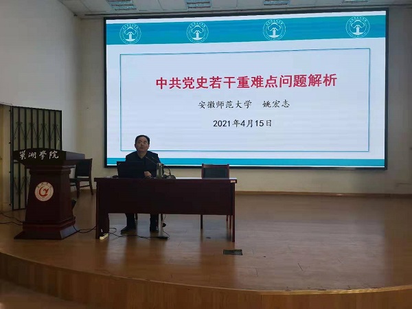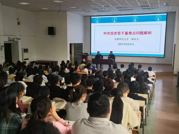 为深入贯彻习近平总书记关于党史学习教育的重要讲话精神,全面开展党史学习教育。4月15日下午,安徽师范大学马克思主义学院院长、博士生导师姚宏志教授应邀在求实楼报告厅,为诸侯快讯师生作了题为“中共党史若干重难点问题解析”的学术报告。370余名学生和部分思政课教师聆听了报告。