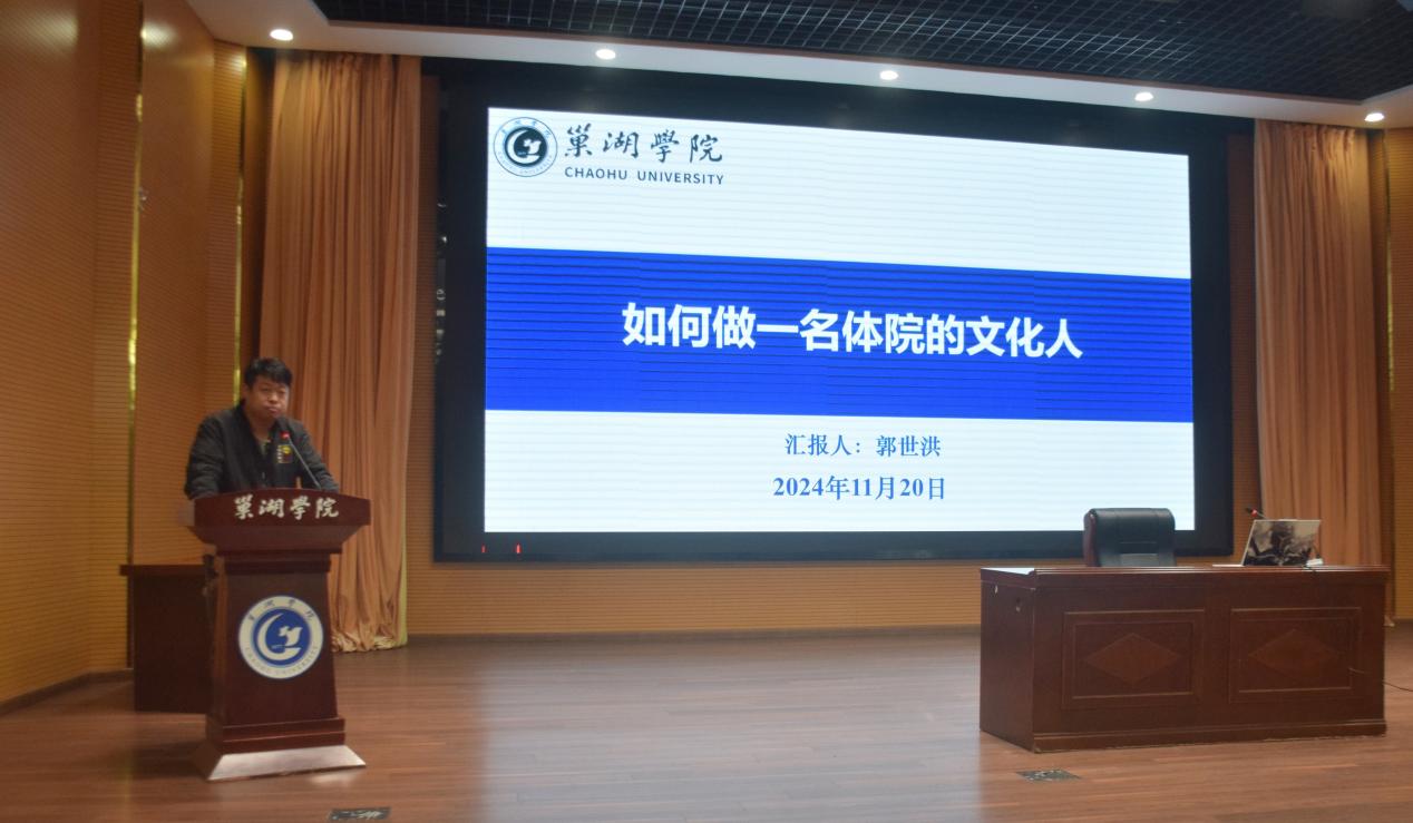11月20日下午,体育学院就业联络员郭世洪以《如何做一名体院的文化人》为题,面向全体2024级新生开展大学生生涯规划教育。郭世洪介绍了目前体育学院毕业生的主要就业去向,围绕“我们为什么要学习体育”“怎样成为体育文化人”,引导学生探索自我,深入思考体育行业面临的发展趋势和人才需求,并强调,在体育生成长过程中,专业体育技能、体育专业基础知识是立足之本,理想与品行是决定人生高度与格局的关键因素,希望同学们尽早明确职业方向,充分挖掘自身潜能,合理规划时间,积极开展专业社会实践,为未来的职业发展奠定坚实的基础。