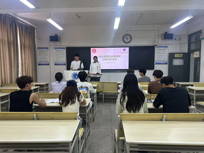 为促进校园新闻宣传工作创新发展,5月22日,体育学院记者站和经济与法学学院记者站于博学楼110教室开展交流活动。来自两院数名骨干成员聚焦新闻采写、新媒体运营等核心议题,以跨界思维共谋宣传新路径。
