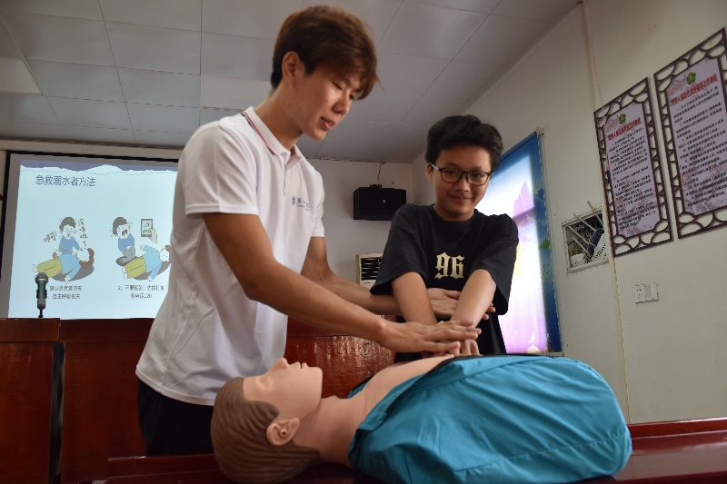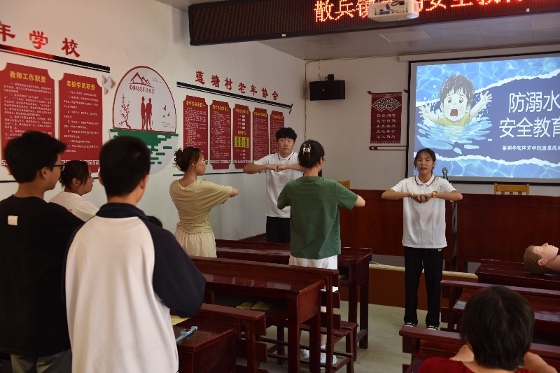 在散兵镇莲塘村老年协会,团队围绕急救知识与科学运动展开活动。团队成员高圣杰以真实溺水案例切入,详解危险水域识别、防溺水“六不准”原则及溺水自救与救援方法,并借助人体模型演示心肺复苏操作,现场指导村民练习。针对食管异物梗阻问题,成员崔彦熙用“剪刀石头布法则”通俗讲解海姆立克急救法,通过口诀与动作演示,让村民快速掌握救助他人与自救技巧。此外,考虑到久坐导致的身体劳损,成员毛雪梅设计了涵盖腕肘、头部、胸背、下肢等部位的特色健身操,耐心指导村民练习。活动尾声,团队还考察了老年协会的适老设施,并发放针对常见病症的定制化《运动处方》。