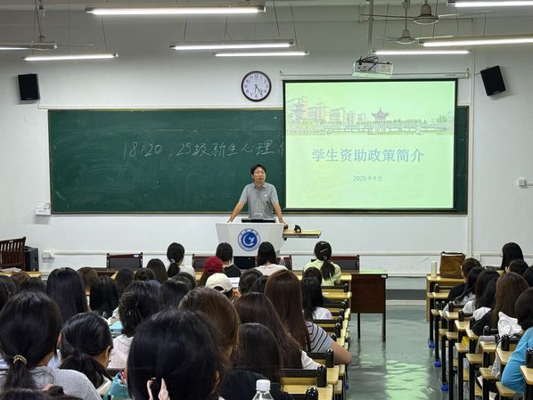 为帮助2025级新生了解奖助政策、掌握奖助信息,解决生活学习中的实际困难,安心完成学业,外国语学院于9月28日开展“资助两节课”资助政策宣讲会。会议由学院2025级新生辅导员金而立主持,全体新生参加。
