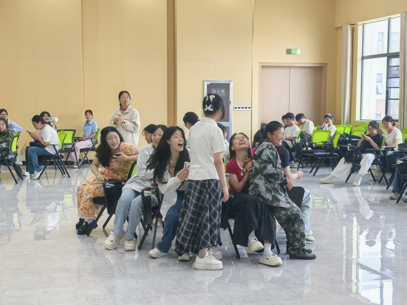 随着活动推进,“抢板凳”“一块五毛”等经典团辅游戏环节将现场气氛推向高潮。在“抢板凳”游戏中,伴随着欢快的音乐,同学们灵活走位、反应迅速,未抢到板凳的同学也笑着加入围观阵营,现场掌声与笑声不断,陌生感在互动中逐渐消散,友谊在欢笑中悄然建立。