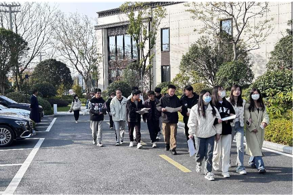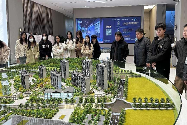 在新华地产专业人员的引导下,师生们首先参观公司的办公环境,了解该公司的发展脉络、文化底蕴和企业价值观。随后,深入各个项目现场,亲身体验该地产项目在项目规划、景观设计、室内设计等领域以及设计理念、施工工艺、方面的专业内涵和创新品质。